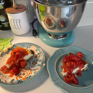 I wouldn't tell y'all about the cheesecake I made for Chris without sharing a pic of course!! It's been years - YEARS - since I made a homemade cheesecake, bit hubs reaction was perfect, letting me know I still got my baking chops 😎 Can't wait to bake all the things I've been missing since I was diagnosed with celiac!!